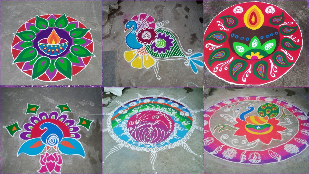 Almost a week before Diwali, every evening, there would be beautiful rangolis in the doorways (aangan) of all houses in our lane in Dhule.