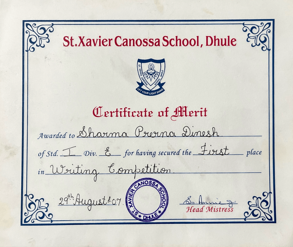 I was in Std X and my sister in Std I, 9 years apart. I was beginning the end of my school journey and Prerna was getting started!